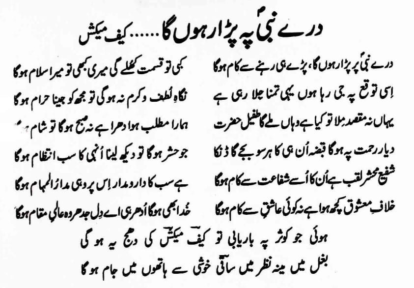 દરે નબી પર પડ઼ા રહૂં ગા, પર્રે હી રહને સે કામ હોગા