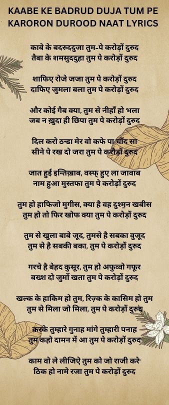 KAABE KE BADRUD DUJA TUM PE KARORON DUROOD NAAT LYRICS