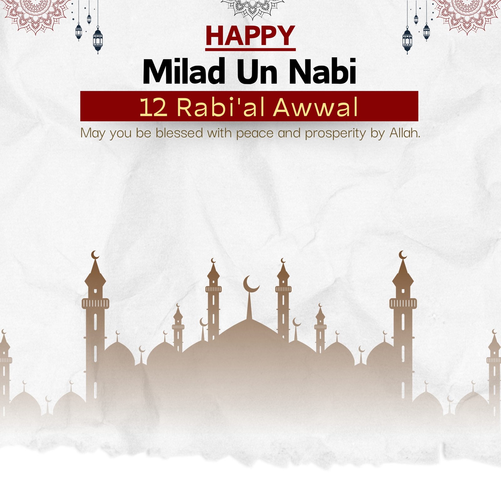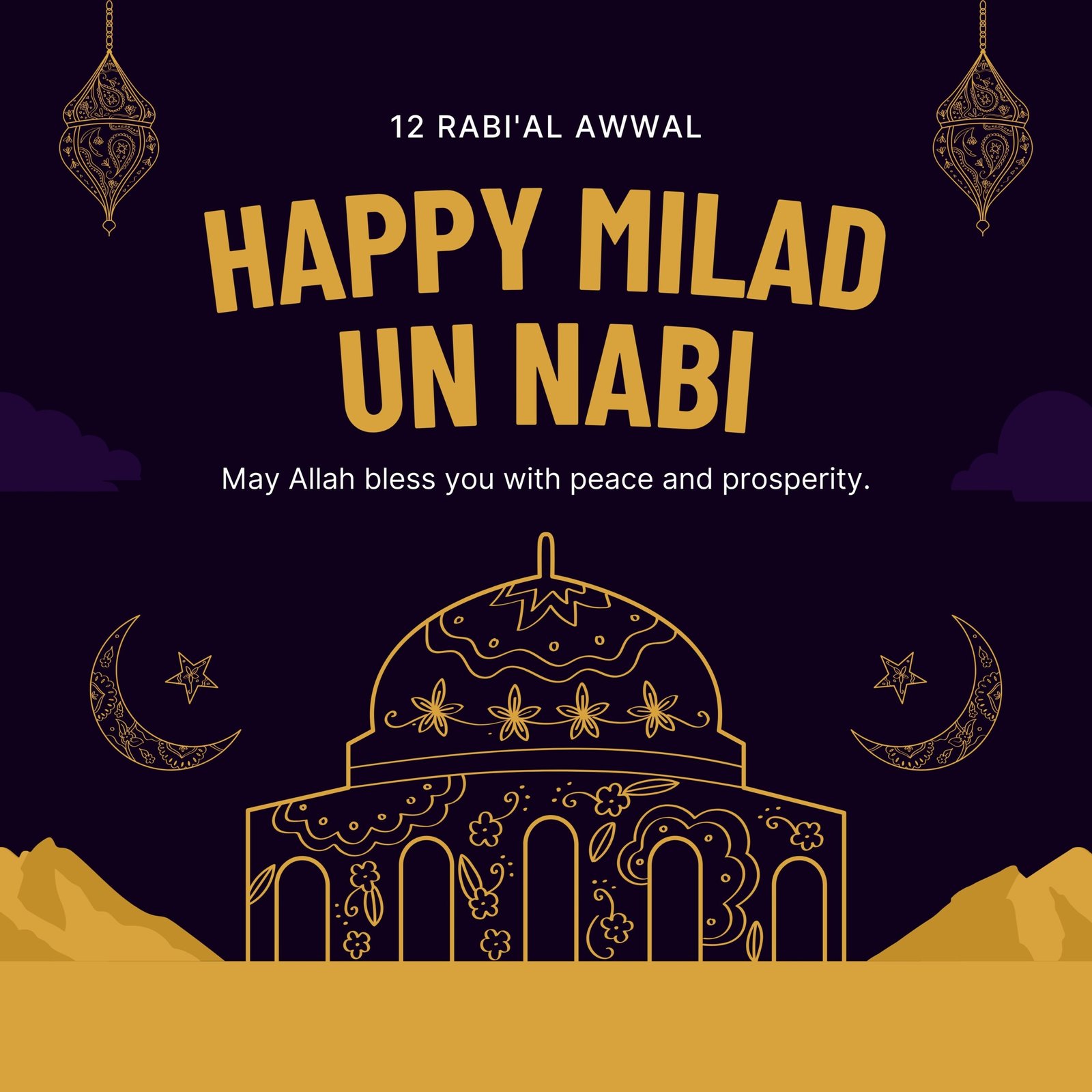 Overall, this image beautifully combines Islamic symbols with a festive greeting for Milad un Nabi, wishing peace and blessings to the recipient.