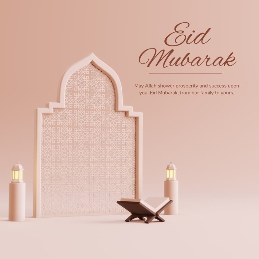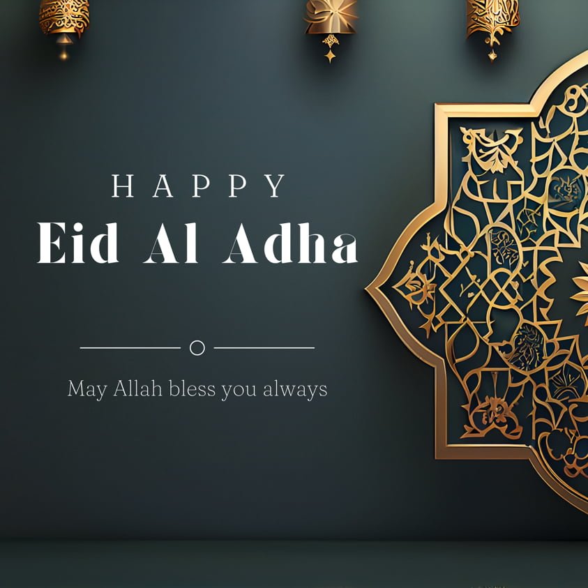The top portion has two golden hanging lanterns on either side, which represent traditional Islamic lights used during celebrations.