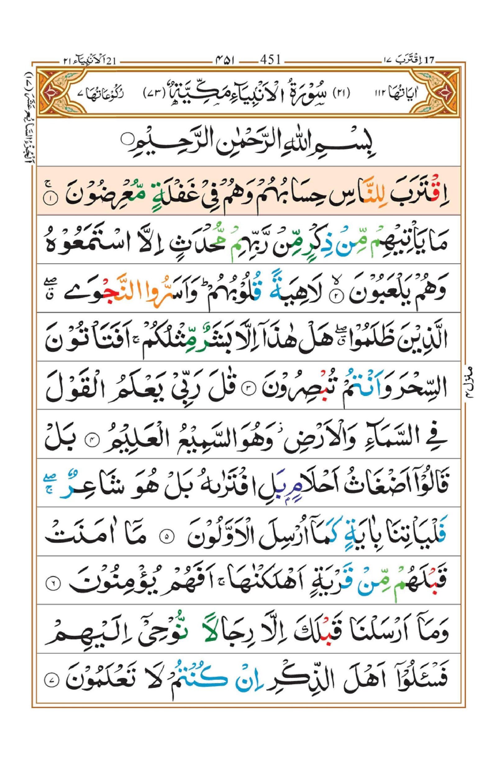 Surah Al-Anbiya in Tajweed