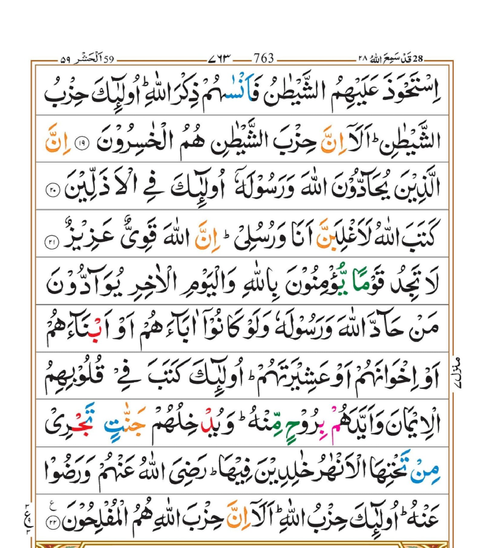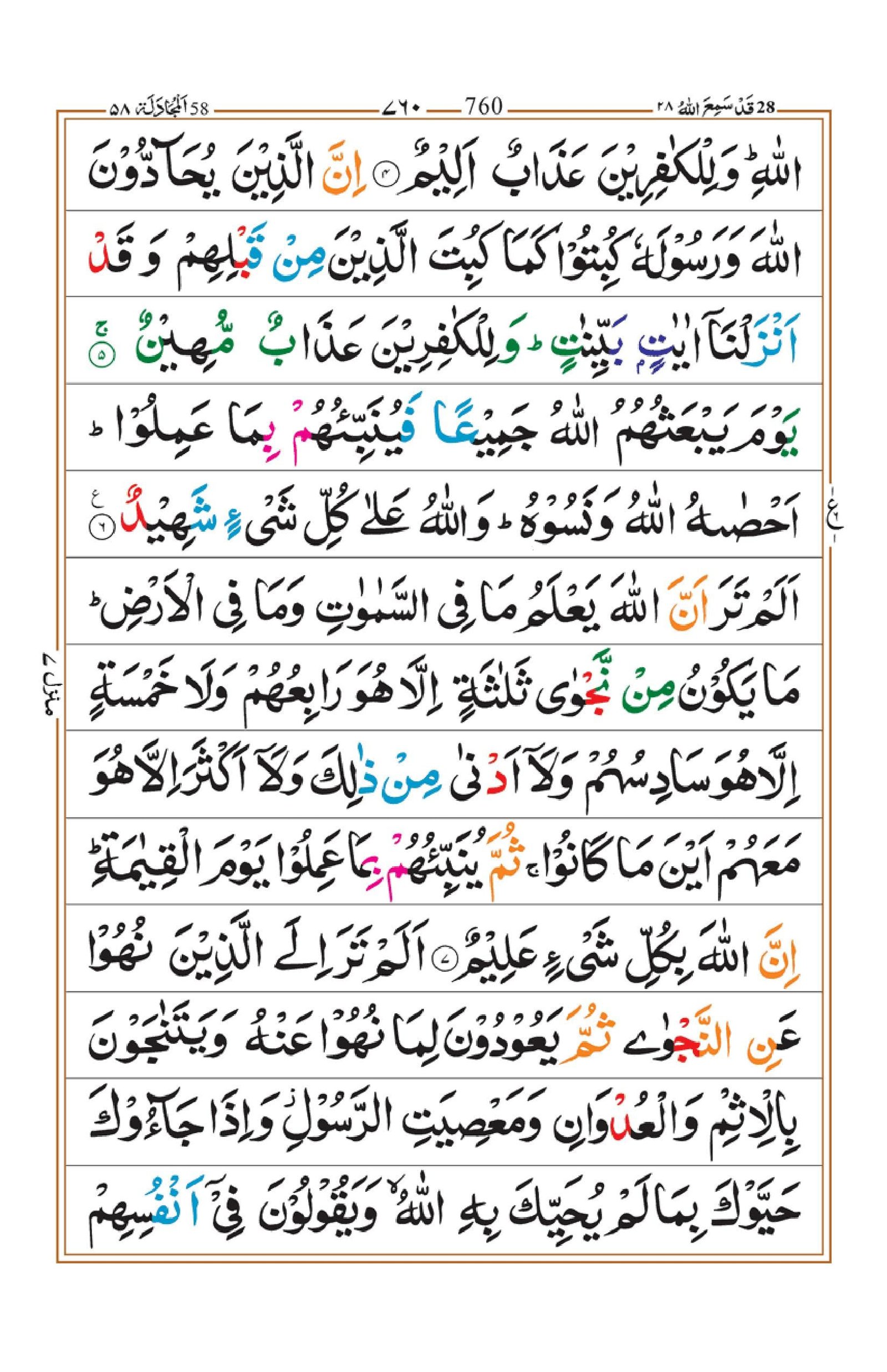 | Ikhfa Meem Saakin | Green | Meem saakin in “عَلَيْهِمْ” (58:14) |