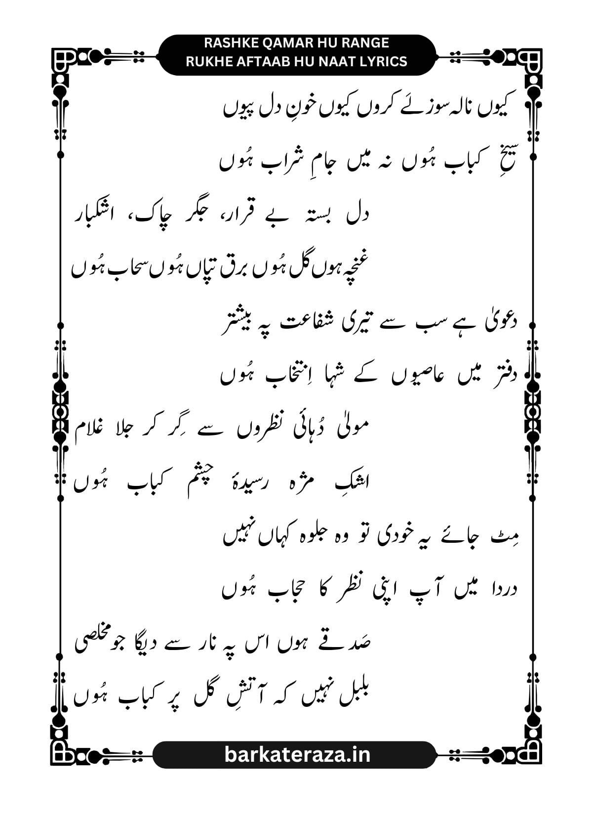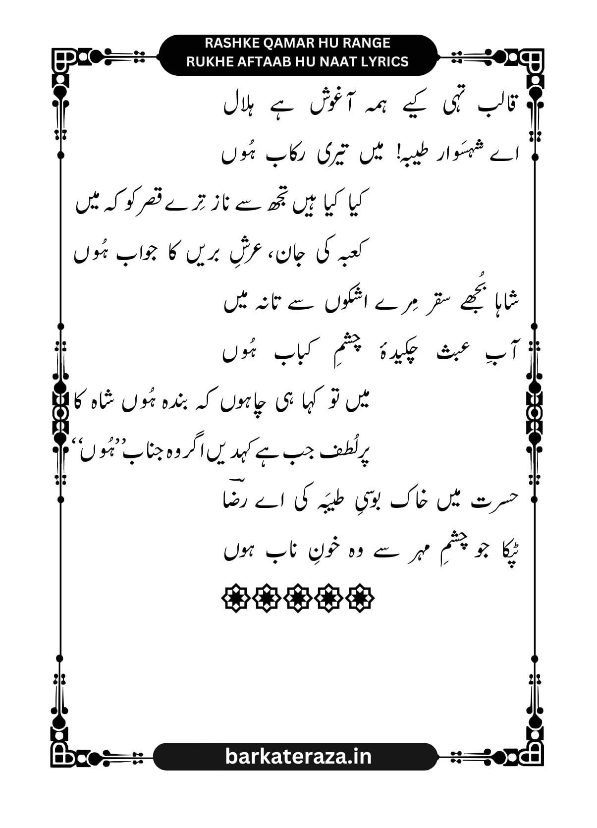 RASHKE QAMAR HU RANGE RUKHE AFTAAB HU NAAT LYRICS