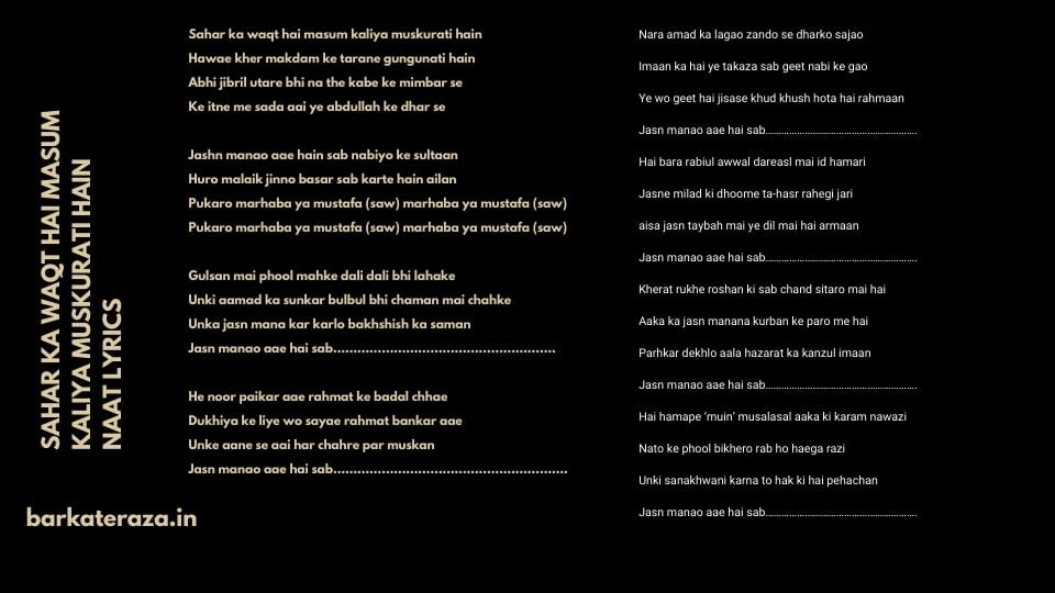 SAHAR KA WAQT HAI MASUM KALIYA MUSKURATI HAIN NAAT LYRICS