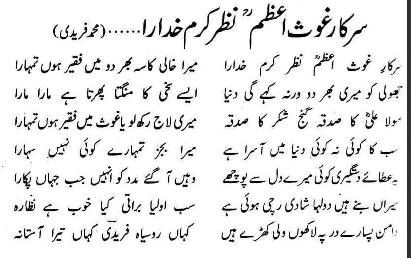 Sarkar E Gaus E Aazam Nazr E Karam Khudara Lyrics