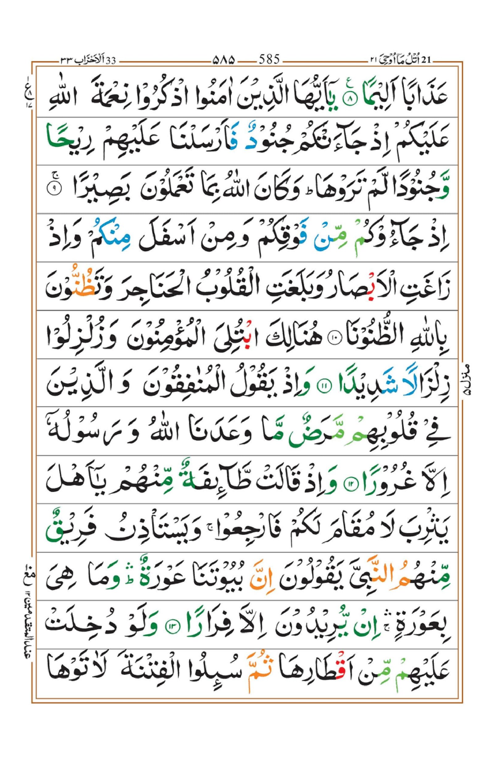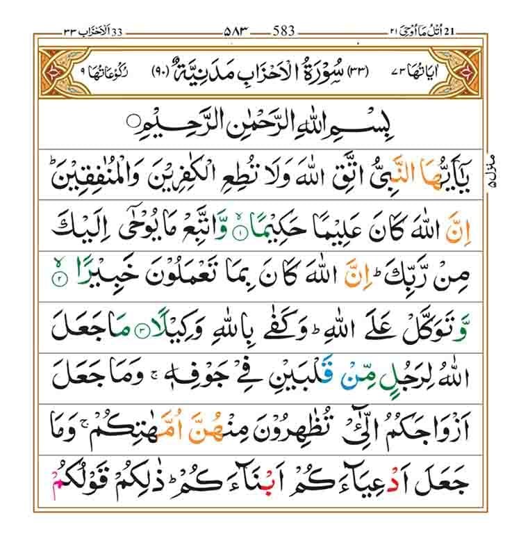 Surah Al-Ahzab is the 33rd chapter of the Holy Quran, with the title meaning “The Combined Forces.” This Surah was revealed in Medina and contains 73 verses, spread across 9 rukus. It is located in Juz’ 21.