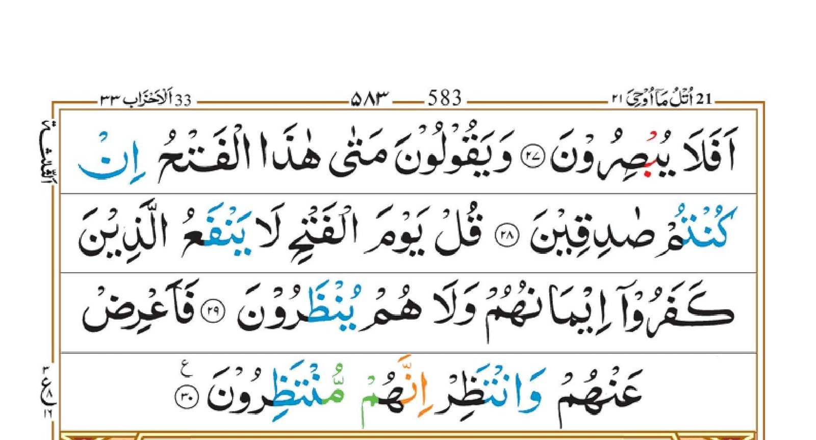 - Ikhfa (blue): Occurs when a Noon Saakin or Tanween is followed by specific letters, resulting in a nasal sound during pronunciation.