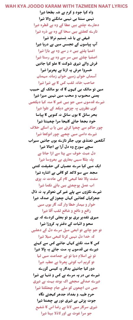 WAH KYA JOODO KARAM WITH TAZMEEN NAAT LYRICS