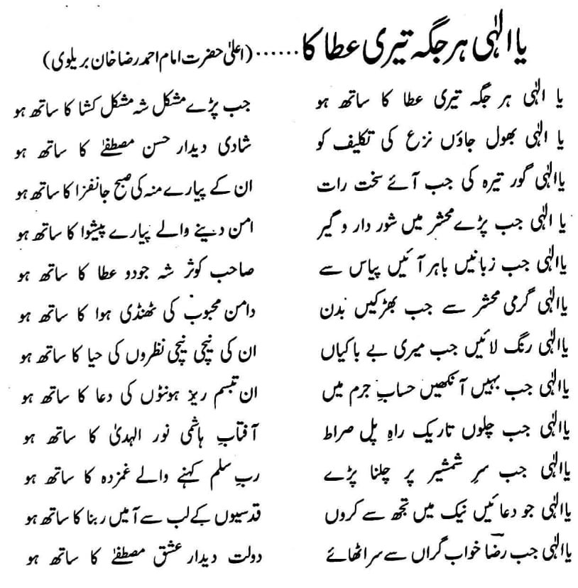 YA ILAAHI HAR JAGA TERI ATAA KA SAATH HO NAAT LYRICS